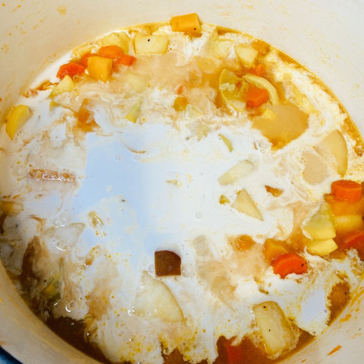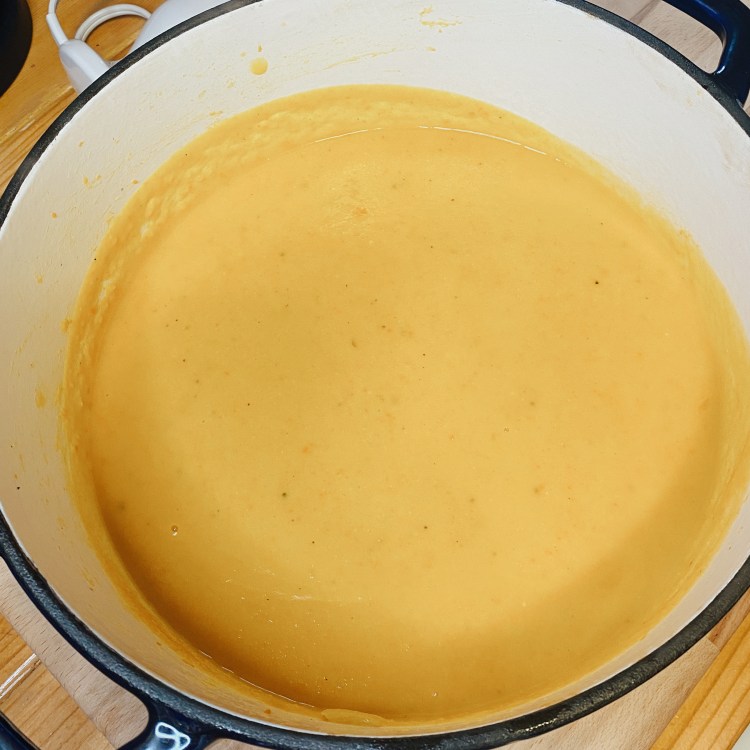 Finely chop the carrot and celery. Add to your pan, and cook for about 5-7 minutes until the carrots begin to soften.