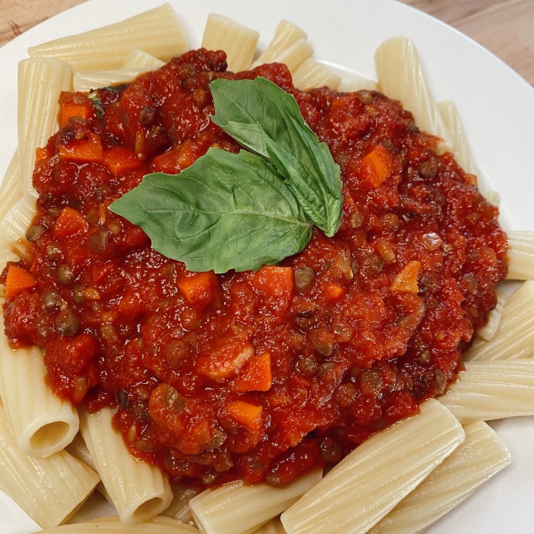 Add the cooked lentils and fresh chopped basil, stir through and let simmer for 10-15 minutes (or while your pasta is cooking), stirring occasionally. Add a few tablespoons of pasta water while it’s simmering to loosen up the sauce if it looks thicker than you’d like.
